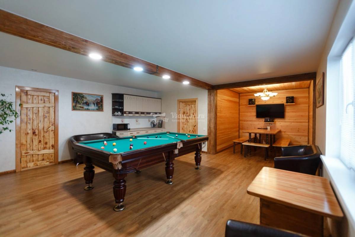 Для комфортного отдыха предлагают: большую парную, уличную беседку с печью, караоке, для парней - американский бильярд, для детей – ТВ, караоке. Есть обеденная зона, кухня.